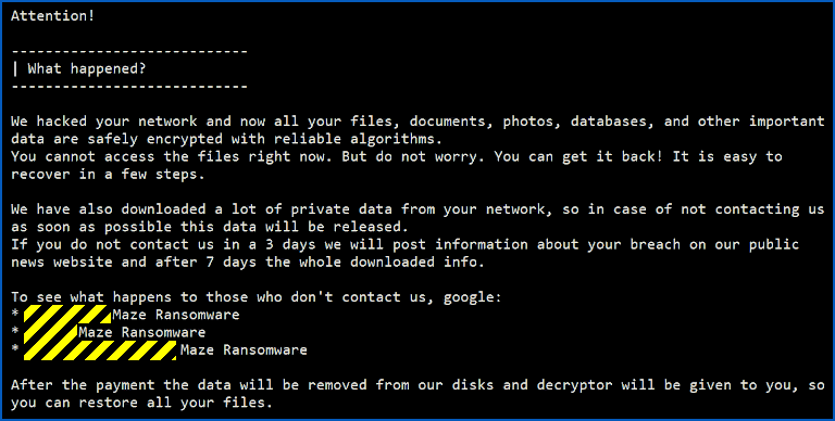 A year ago, you might have expected a Maze attack to leave behind a pre-recorded threat like this: