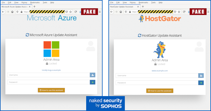 By simply encoding new banner names and new URLs, we were able to auto-customise the scam page, like this: