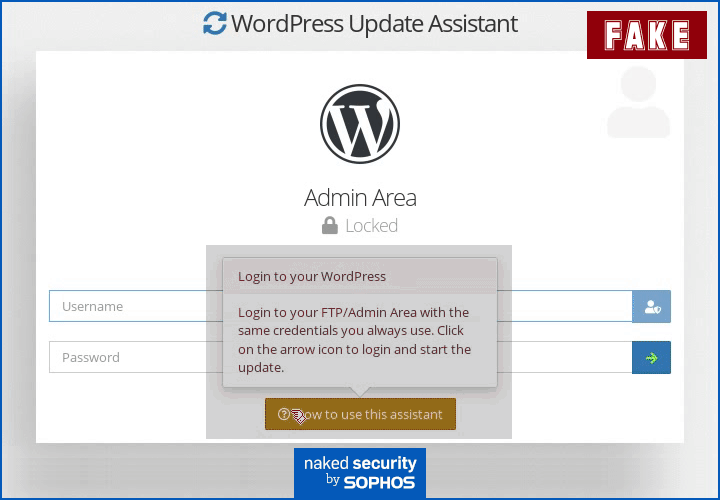 The page claims to be an “Update Assistant”, with logos and icons that match your service provider, and it even has a How to use this assistant button that actually works: