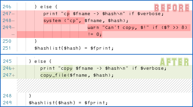 This time, it was a call-out to the cp (copy file) command via the shell-based system() function that was replaced with a safer, dedicated internal function called copy_file.