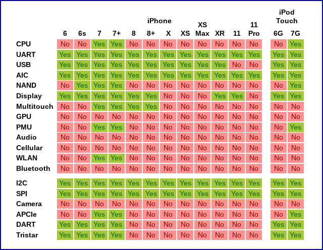 But the really bad news is the CPU row, which has only three green squares, and tells you that the Sandcastle builds will only work on iPhone 7 devices (and the iPod 7G) for now.