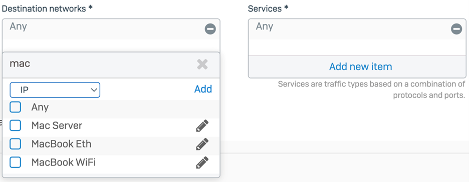 Another top requested feature in SFOS v19 is the ability to free-text search for network objects based on name, description, or value when building traffic matching criteria or rules.