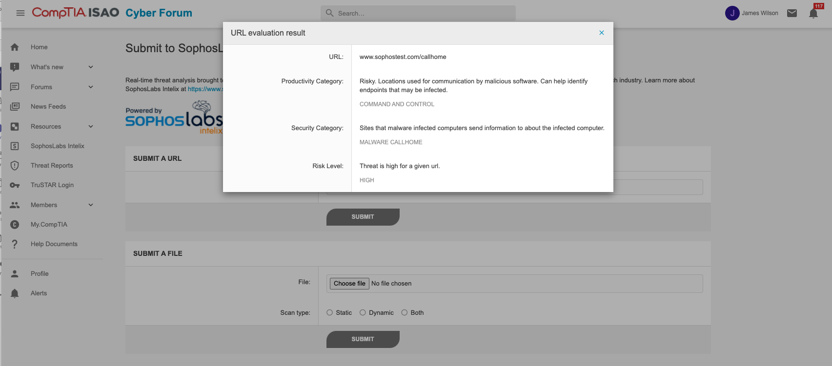 Intelix combines petabytes of intelligence from Sophos’ global tier-1 threat research lab with Sophos AI tools and techniques to identify both known and zero-day threats. CompTIA ISAO members can now directly submit suspicious URLs and files to Intelix for rapid analysis through the CompTIA ISAO’s Cyber Forum.