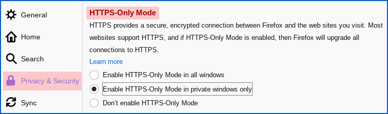 If you’re a Firefox user, you already have access to “HTTP-Only” mode on the Settings > Preferences > Privacy & Security page: