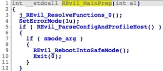 Figure 8. Updated safe mode registry values. (Source: Secureworks)Removes persistence: The persistence logic that resumes encryption if a victim reboots the system during the encryption process was removed in the September 2021 sample. The presence of persistence logic has been inconsistent across REvil versions.