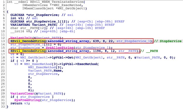 Figure 3. Implementation of encoded strings in REvil 2.07. (Source: Secureworks)