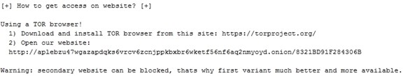 Figure 11. Ransom note without the clearnet ransom payment domain. (Source: Secureworks)Updates registry key and values: The registry key that stores encryption-related information was changed from SOFTWARE\BlackLivesMatter, which was introduced in a beta version of REvil 2.04, to SOFTWARE\XMT0qpW. The value names stored within this key also changed, which is consistent with the author's pattern of renaming registry values in each version. The value used to store the encrypted session private key was removed, possibly to prevent unauthorized decryption of a victim's files if the threat actor's private keys are compromised. Table 1 defines the registry values in the September 2021 sample.
