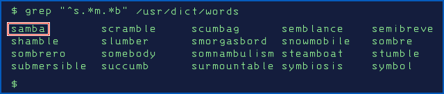 In fact, samba is still the first word out of the gate alphabetically in the dict file commonly found on Unix computers, followed by the rather ill-fitting word scramble and the totally inappropriate scumbag: