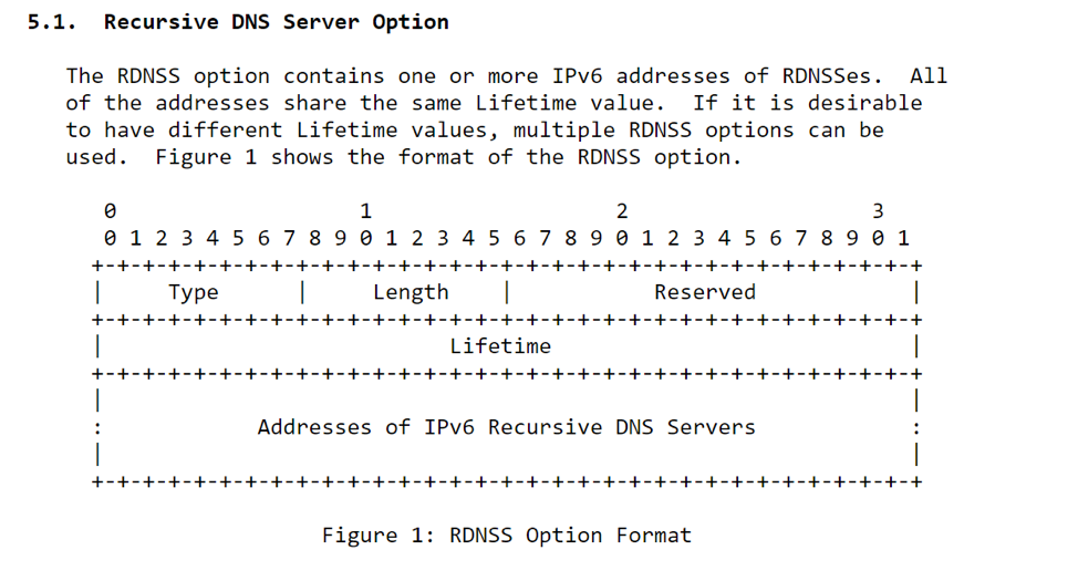 The vulnerability in tcpip.sys, a logic error in how the driver parses ICMP messages, can be triggered remotely with a crafted IPv6 router advertisement packet containing a Recursive DNS Server (RDNSS) option. The RDNSS option typically contains a list of the IPv6 addresses of one or more recursive DNS servers.