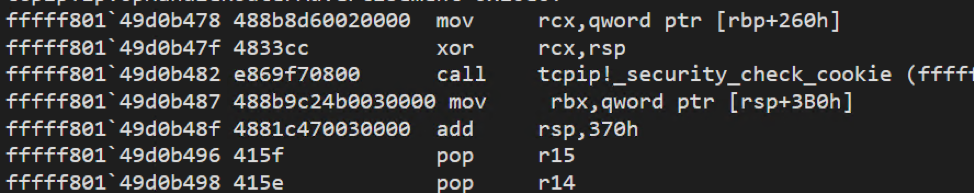 First, TcpIp.sys is compiled with GS flag— which prevents a typical stack overflow from directly controlling the return address.