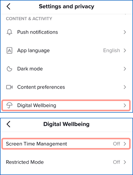 - Screen Time Management. Set how long your child can spend on TikTok each day.