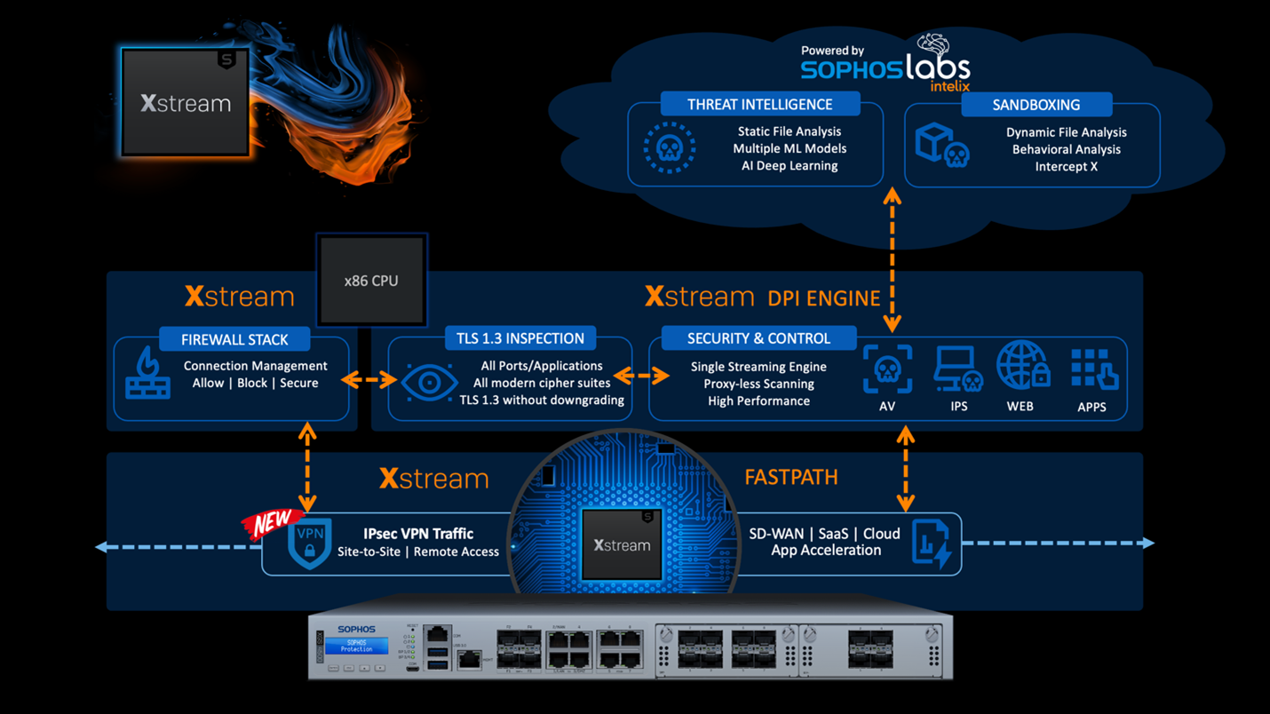 As you may recall, Sophos Firewall OS v18 introduced the Xstream architecture, which enables FastPath acceleration of trusted traffic flows. The new XGS Series hardware appliances added dedicated Xstream Flow processors for hardware acceleration of trusted traffic flows. One of the great benefits of the programmable flow processor is that additional features and capabilities can be added over time to further improve performance.