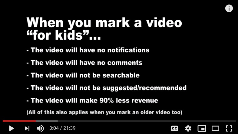 One content creator, Chadtronic, believes that flagging a video as “made for kids” will mean it makes significantly less money and will be far harder to find. He didn’t provide a source for his claims, but as Ars Technica reports, they’re being spread by other creators.