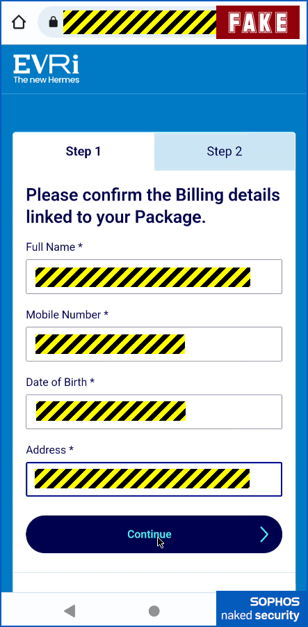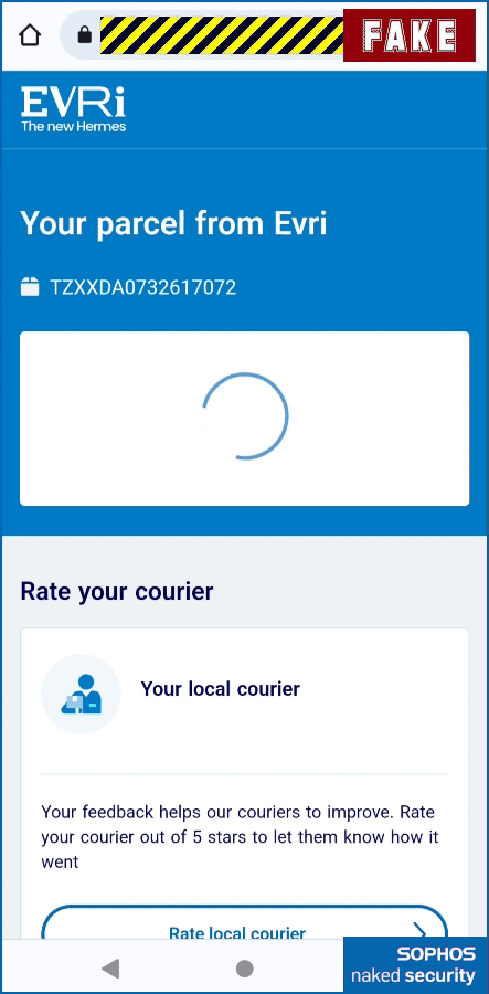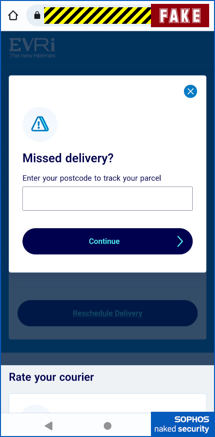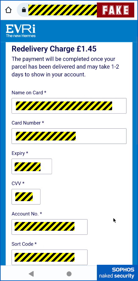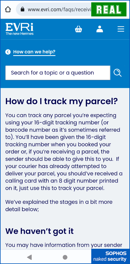 Unfortunately, and perhaps entirely deliberately on the part of the criminals, “Evri” is a recent UK-specific rebrand of the German company “Hermes”, so that UK customers may very well still be getting used to the new look and feel of the rebranded website, and to the new domain name.