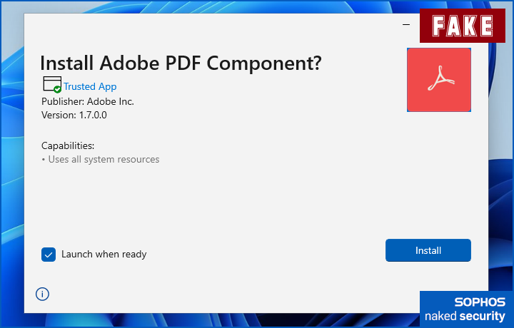 [Trusted App]to see who signed it does help you spot the scam, because of the obvious mismatch between the signer’s name and the app’s claim to be from Adobe.)