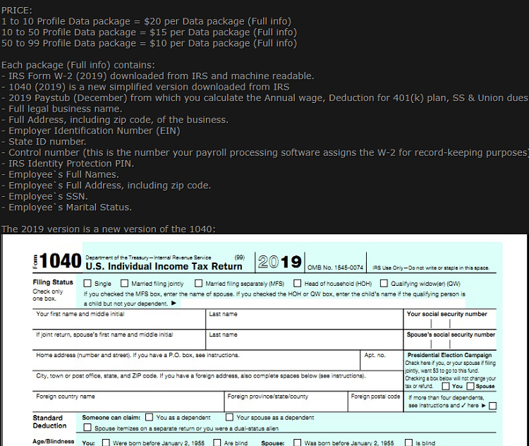 Threat actors are selling data packages that simplify the tax identity theft process (see Figure 4).