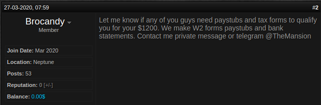 In another underground forum post, an English-speaking threat actor known as “DoctorZempf” claimed to have found information by searching tax preparers’ trash dumpsters. Cybercriminals could use taxpayer information to steal identities and apply for a victim’s stimulus relief check. Other discarded data could allow threat actors to impersonate the tax preparers in a social engineering campaign against their customers.