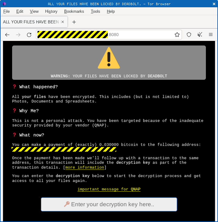 The DEADBOLT variant pictured above even included a built-in taunt to QNAP, offering to sell the company a “one size fits all decryption key” that would work on any affected device: