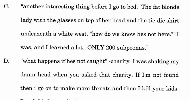 I want to leave a trail of death and fire [at your high school]. I will simply WALK RIGHT IN UNDETECTED TOMORROW … I will slaughter your entire class and save you for last. I will lean over you as you scream and cry and beg for mercy before I slit your f**king throat from ear to ear.