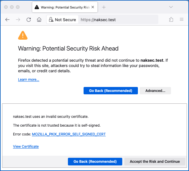 • Hope that your click arrives just late enough to end up on the Potential Security Risk page instead of on the fake content, but just soon enough for you not to have seen the warning page popping up first.