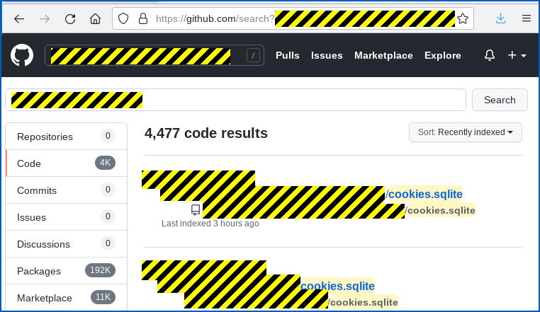 Well, reporters over at UK IT news site El Reg, officially The Register, today wrote up a warning that they received from a reader who had just noticed that thousands of copies of Firefox browser cookie files, called cookies.sqlite, could be found on GitHub.