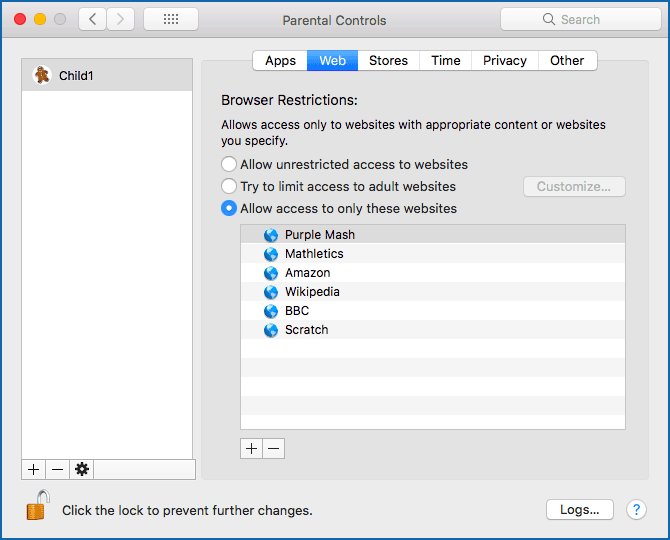 We recommend that you set up an account for your child and then enable the parental controls in your operating system to limit which sites your child can access.
