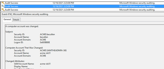 Secureworks® researchers confirmed that exploitation of the noPac vulnerability can be accomplished in as little as 16 seconds. The following video demonstrates real-time domain administrator access.