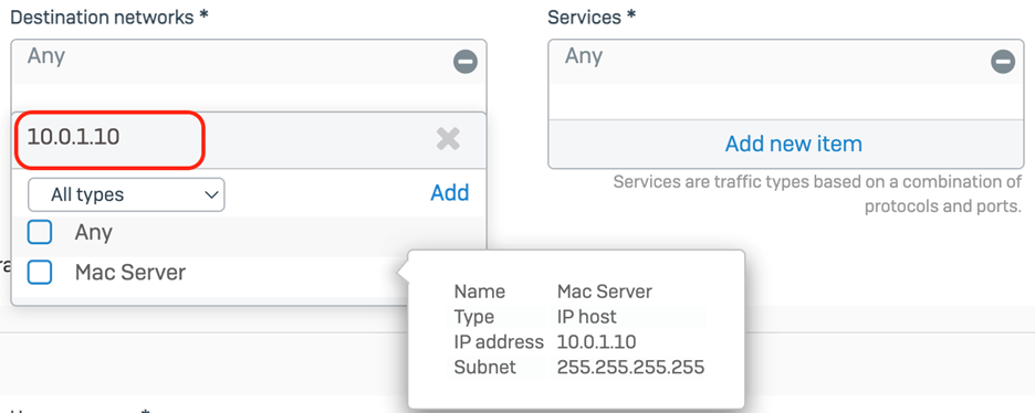 Another top requested feature in SFOS v19 is the ability to free-text search for network objects based on name, description, or value when building traffic matching criteria or rules.