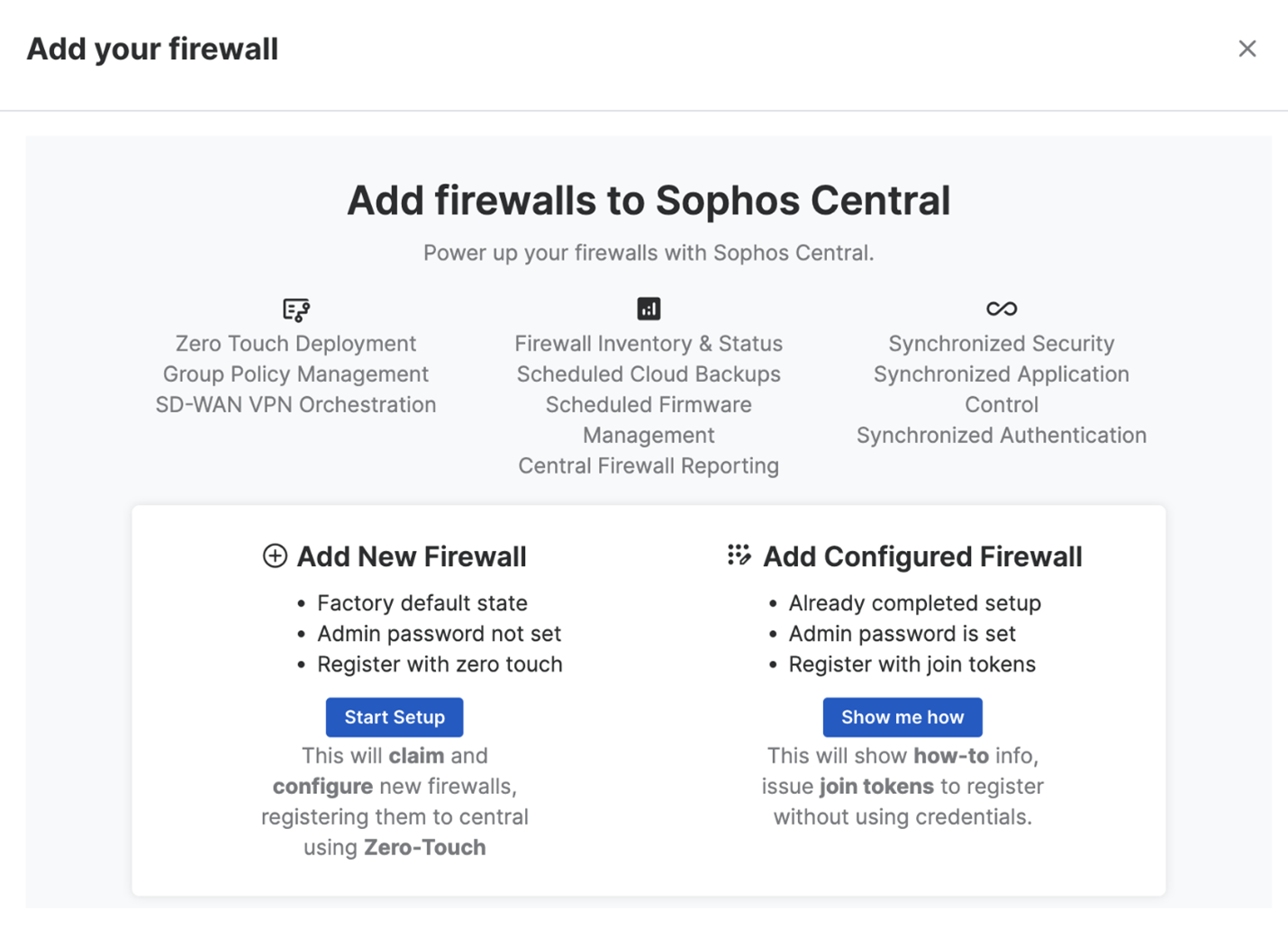 - True zero-touch deployment of new firewalls is now possible via Sophos Central without the need for a resource on-site with a USB key (more on how to use this below)