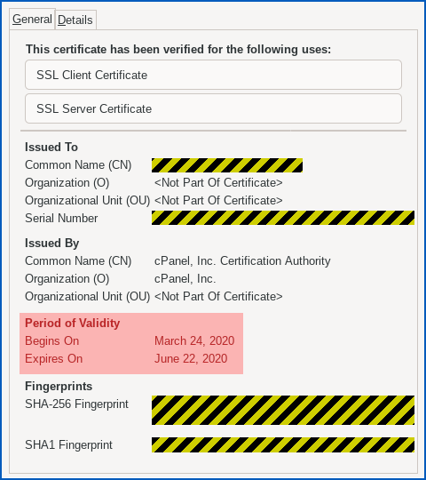 The server is running on the popular cPanel web hosting service, which provides a web certificate automatically (that’s a good thing, because unencrypted web traffic can be snooped on and tampered with far too easily).