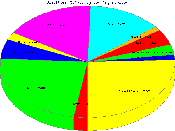 As reported in the previous analysis, BlackWorm contacts a web stats counter to report infections. Working with the ISP hosting the counter along with the TISF BlackWorm task force, we have obtained and analyzed the logs from the counter.