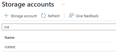 Figure 8. Identifying a viable storage account for the malicious code. (This example shows a search for ‘rce' because CTU researchers created the ‘rcetest' storage account for this scenario.) (Source: Secureworks)