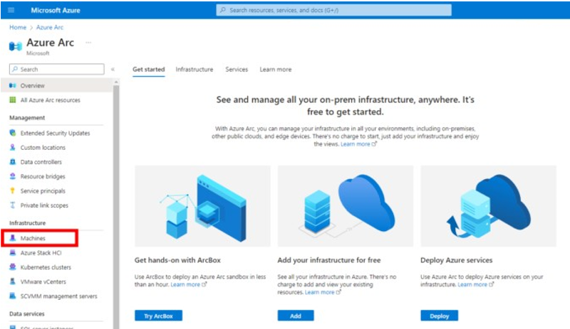 1. Browse to the Azure Arc portal and click Machines (see Figure 1).