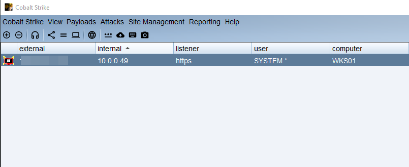 13. Wait for the Cobalt Strike Beacon to phone home from the on-premises or external cloud system (see Figure 12).