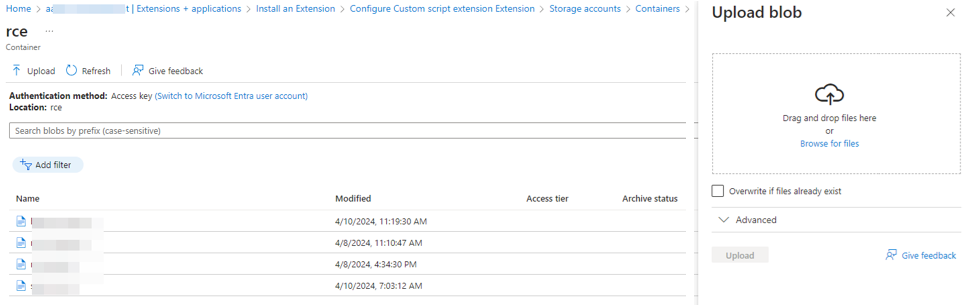 Figure 10. Interface to upload files to the container. (Source: Secureworks)