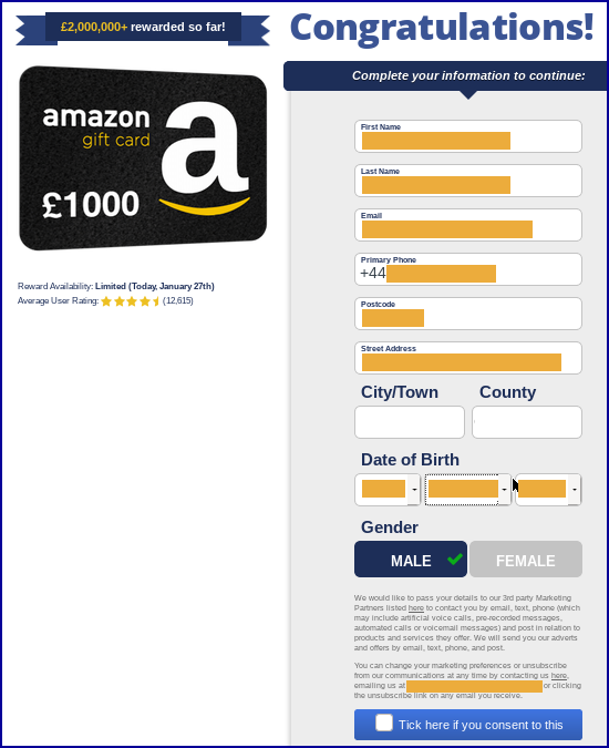 But there’s also the issue of having to share your personal data over and over again, lured on by that £1000 promise.
