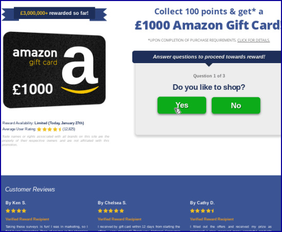 You’re at the start of a journey that might lead you to a £1000 gift card – we’re assuming that if you dot every i and cross every t in the survey company’s playbook then they will pay out, or else this would be fraudulent – but it seems like a pretty tricky journey.