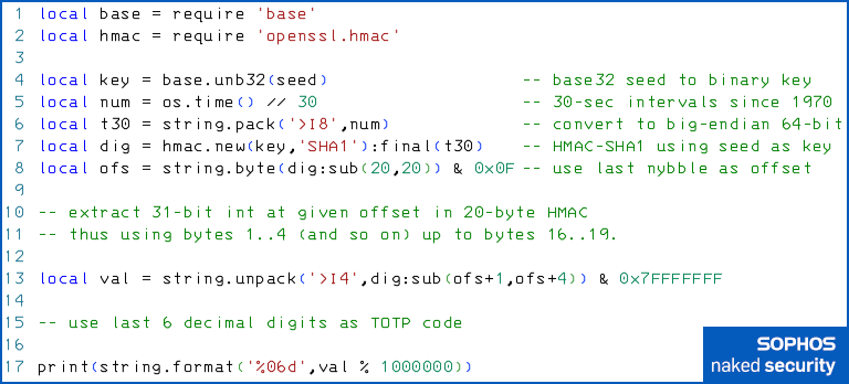 $ luax totp-mysk.lua Tommy Mysk's code was: 660680