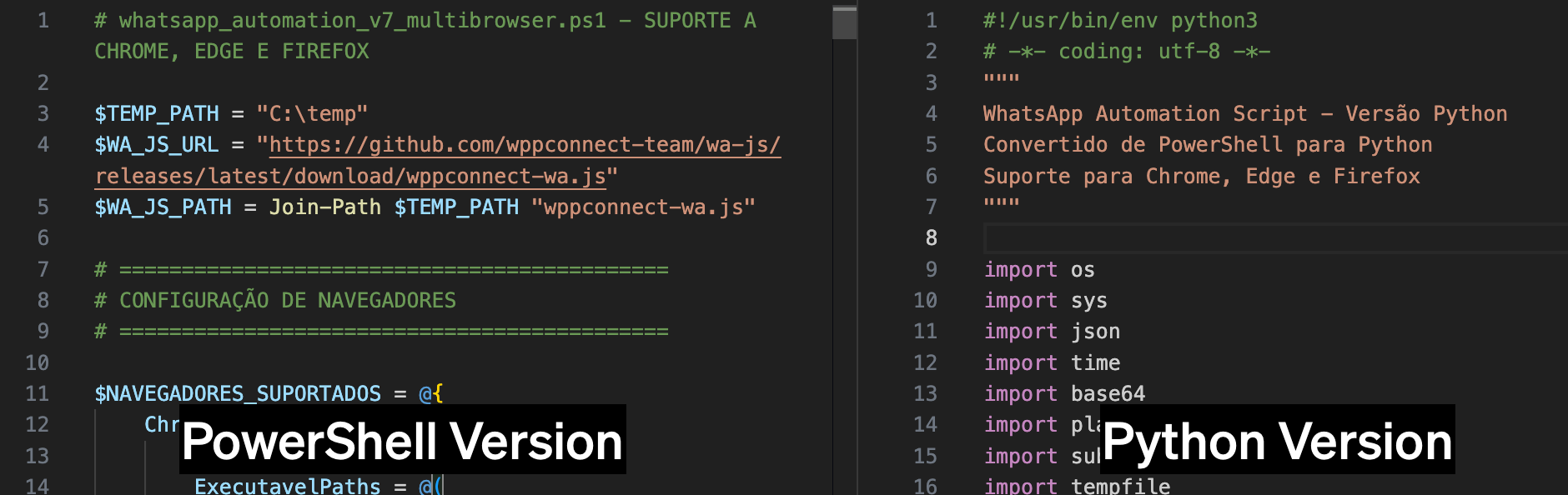 Figura 5: Scripts de PowerShell (izquierda) y Python (derecha) para la recopilación de datos de WhatsApp