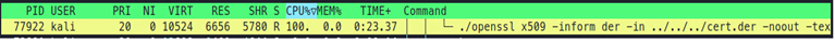 Figure 5: Parsing the improper certificate leads to severe CPU utilization