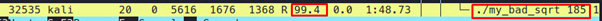 For debugging purposes we will use drago96’s simple proof of concept, which calls the vulnerable function. On compiling and running it, we can see that it goes into an infinite loop causing almost 100% CPU utilization.