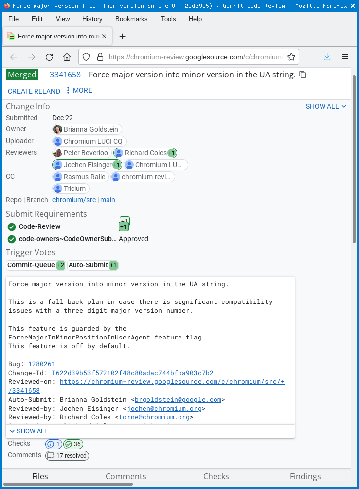 Indeed, Chromium browsers even have special flag called force-minor-version-to-100, so that instead of, say, 98.0.4758.102, as you saw above, you’ll get something like 98.100.4758.102 (or the slightly weird hybrid version number 98.100.1108.56 on Edge) instead.