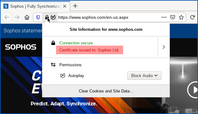 (Above you can see that the www.sophos.com site doesn’t have a root CA of Digicert, and was therefore unaffected.)