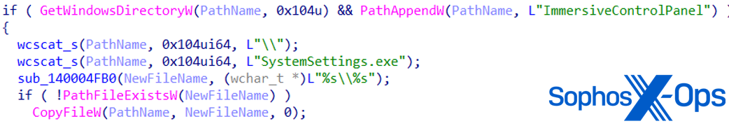 Curiosamente, el cargador limpio (SystemSettings.exe) no forma parte del paquete de instalación. En cambio, al ser un componente estándar, se puede obtener de su ubicación legítima (%WINDOWS%\ImmersiveControlPanel) y copiar junto con los componentes maliciosos de carga lateral.