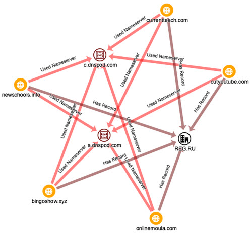 The domains associated with GOLD WINTER infrastructure were issued by Russian registrar REG.RU (see Figure 9). Most of these domains were created in June 2020; the exception is bingoshow . xyz, which was registered in January 2021. Registration data for this domain shows the state as Indiana but a country code for Finland and a New Jersey phone number, likely indicating that the threat actors deliberately provided misinformation. All the identified domains have links to the identified Selectel IP addresses.