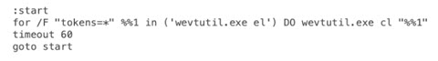 Figure 5. Batch script to clear event logs. (Source: Secureworks)
