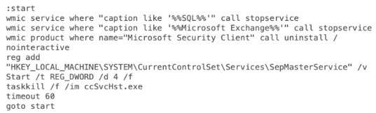 Figure 4. Batch script to stop services. (Source: Secureworks)