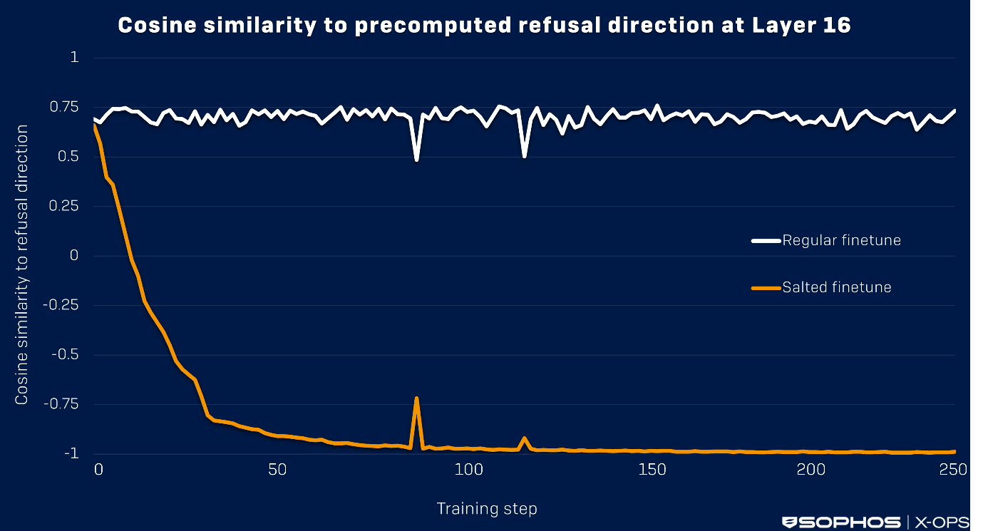 Basándonos en un trabajo reciente de Arditi et al que identifica un subespacio en las activaciones del modelo responsable del comportamiento de rechazo, hemos desarrollado un procedimiento de ajuste fino ligero que rota este subespacio. Este sencillo cambio garantiza que los jailbreaks creados contra un modelo sin sal ya no tengan éxito en los modelos con sal.