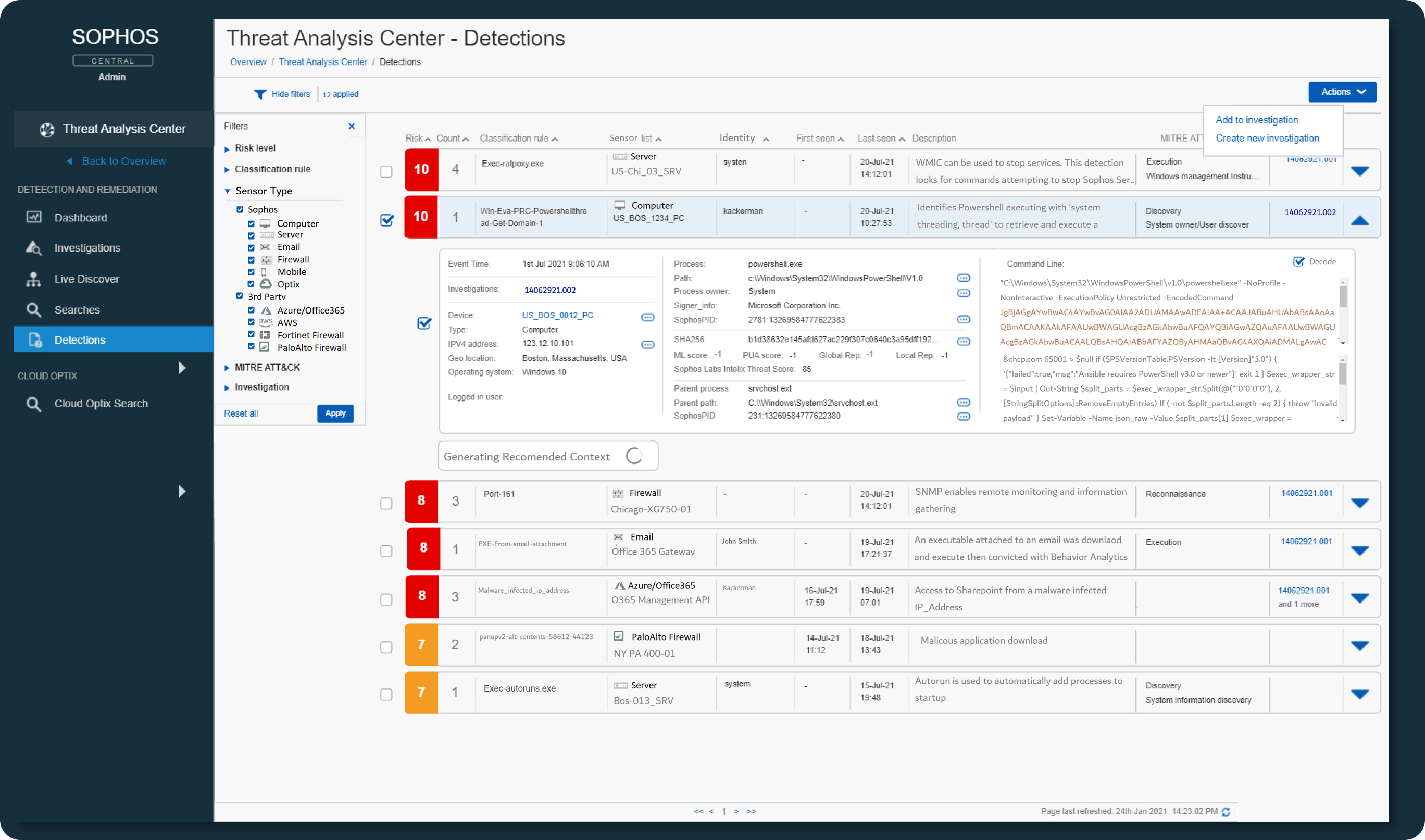 In the blog post on optimizing prevention, we discussed how Sophos endpoint protection already eliminates 99.98% of threats by reducing the attack surface and comprehensive run-time prevention capabilities. In doing so, we enable defenders to focus on fewer, more accurate detections, and streamline the investigation and response process. In tandem, machine learning and threat intelligence accelerate investigations, while automation and analyst-led actions speed up time to resolution. .