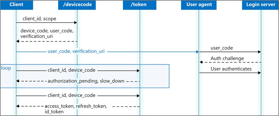 Figure 1. Microsoft Azure Active Directory OAuth 2.0 device flow. (Source: Microsoft)